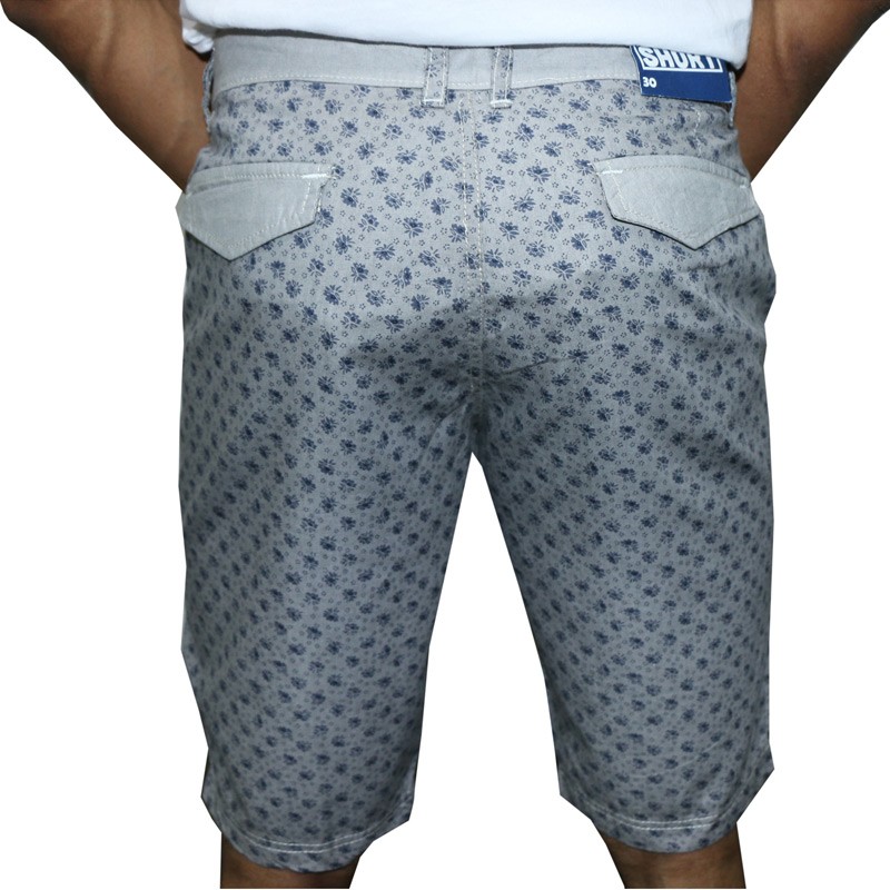 Slim fit printed chambry short